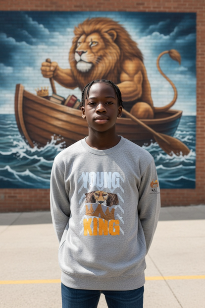 Gray young king sweatshirt made with fabric paint and dtf heat transfer